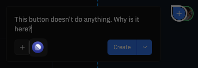 To attach a Linear issue to a comment, open the integrations dropdown menu from the Create button. Select Create issue in the Linear row.