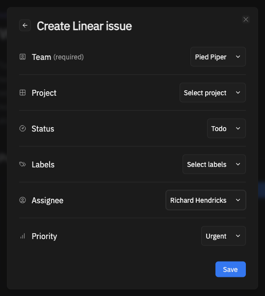 You can also set default issue properties and automatically create issues in Linear with every comment.1
